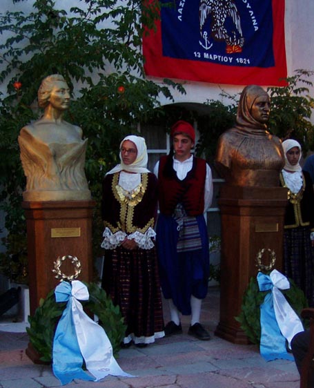 Laskarina Bouboulina's flag above statues was raised on her flagship
