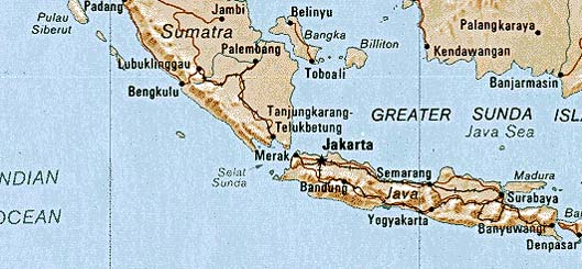 Many of the names of the towns and villages of this region given here were taken from older accounts. These names have changed since the departure of the Dutch from Indonesia. For example Batavia, has been replaced by Jakarta. The following is a short description of tsunami heights and travel times at the islands of Java and Sumatra in Indonesia.